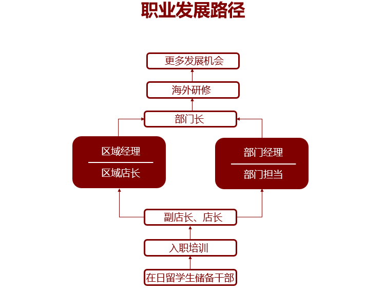 MUJI在日留学生储备干部是MUJI上海为了应对快速变化的市场并结合公司的发展,创立的人才发展储备计划,招募有志于在快速变化的零售业,顺应变化、迎接挑战的管理储备人才。在日留学生储备干部入职后,将首先接受总部统一的职前培训,了解MUJI企业文化及产品、掌握零售业的基础知识及工作方法。后续在上海店铺的工作过程中,MUJI在日留学生储备干部将分阶段地学习零售门店的运营技能,积累管理经验,以一年为目标,成长为能够独当一面的店铺经营管理者。如MUJI给自我贴上的“空的容器”的标签一样,因其单纯而空白,所以才诞生了能容纳所有人思想的自由性。MUJI给在日留学生储备干部提供了两种不同的职业发展路径,以充分发挥个人能力、展示自我。在后续的培养方向上,在日留学生储备干部可以选择继续留在销售一线,打磨自身的管理能力,向更上一级发展;同时,上海总部设有营业本部、商品部门、管理部门、监查部门、市场部门等,有意愿往总部职能岗位发展的在日留学生储备干部,公司也会倾听他们的声音并结合实际情况提供多方面的发展方向。